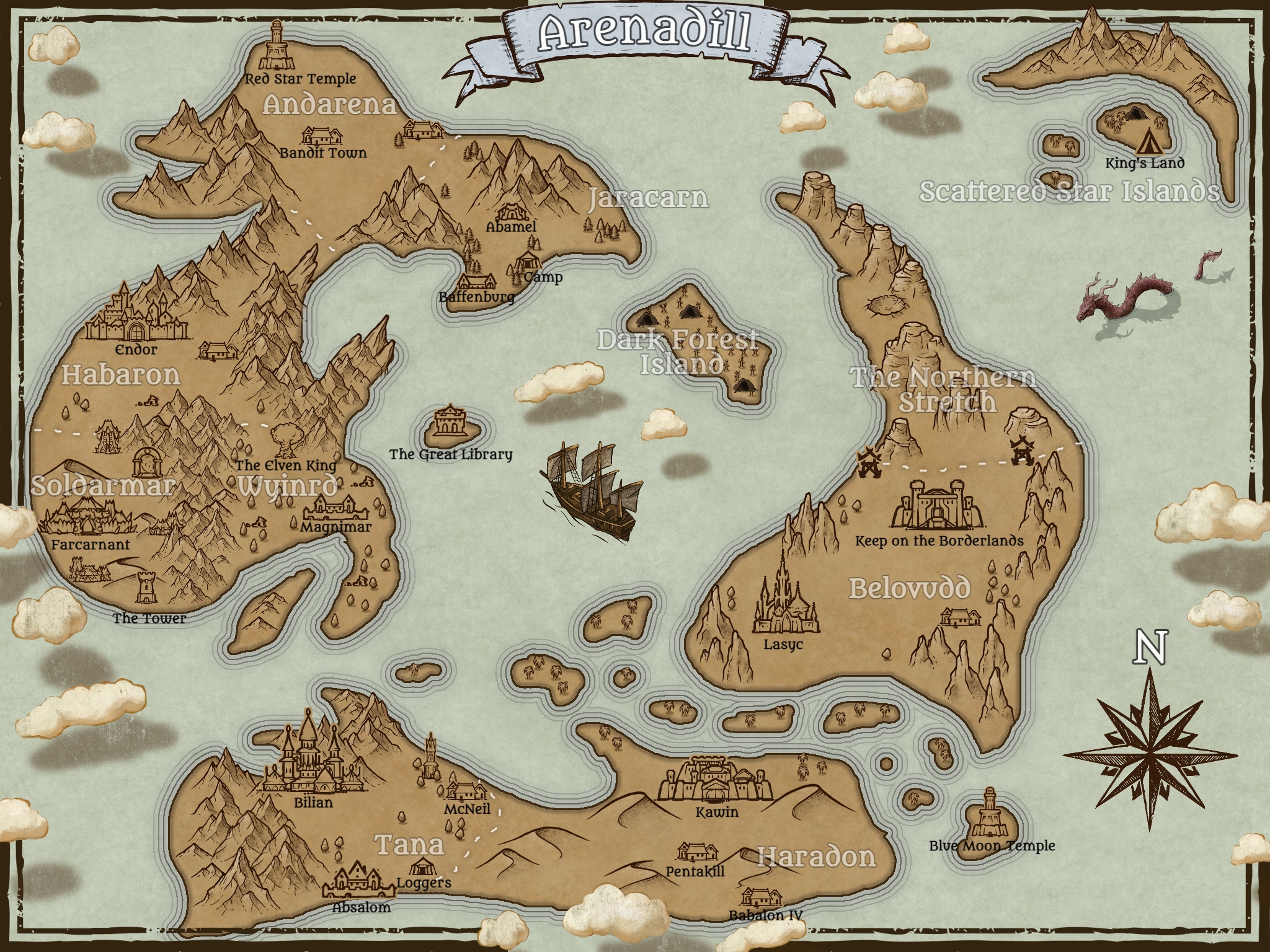 Haradon, land of the sand. Humans have settled most of this land, creating small outposts around the desert and occupying the main water ways. Few travelers can withstand the heat of the desert and commonly seek guide to pass through. The land is now ruled by the recent Duke, Cleric.